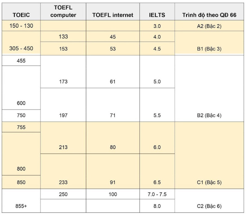 Nếu bạn đang thắc mắc về việc quy đổi điểm TOEIC sang trình độ B1, thì mình xin chia sẻ thông tin chi tiết. Theo khảo sát, trình độ tiếng Anh B1 tương đương với mức điểm TOEIC từ 255 đến 450. Cụ thể, nếu bạn đạt điểm TOEIC khoảng 450 thì có thể chuyển đổi sang đủ tiêu chuẩn cho trình độ B1. Thậm chí, điểm quy đổi này được xem là tương đương với chứng chỉ C cũ của Bộ Giáo dục và Đào tạo Việt Nam cũng như 4.5 IELTS.
