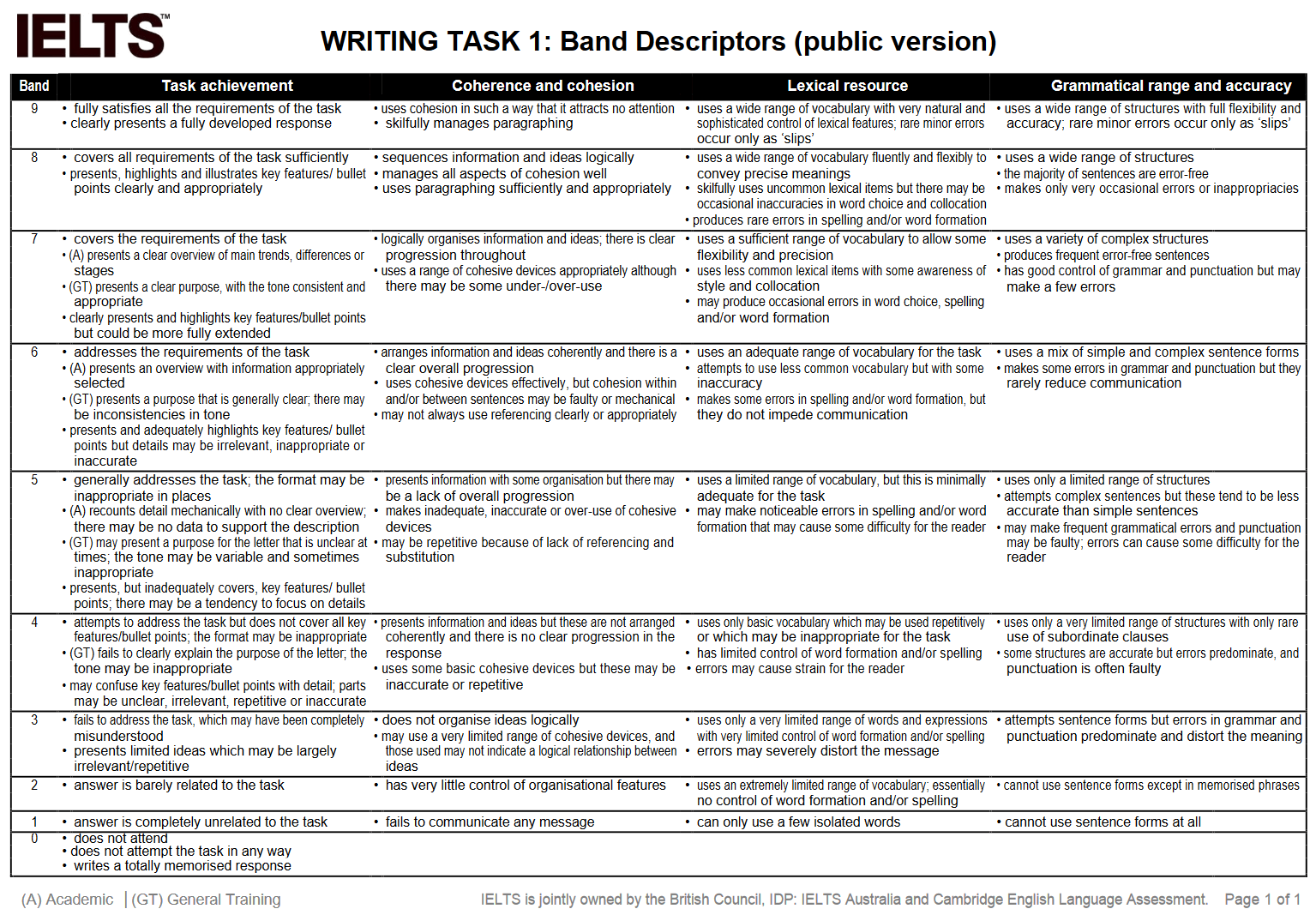 Trong quá trình luyện thi IELTS, việc hiểu rõ các tiêu chí chấm điểm (band descriptors) của Writing Task 1 là vô cùng cần thiết để đạt band điểm mong muốn. Band descriptors cho Writing Task 1 mô tả chi tiết những tiêu chuẩn mà giám khảo sử dụng để đánh giá phần viết của thí sinh, bao gồm bốn tiêu chí chính: Task Achievement, Coherence and Cohesion, Lexical Resource, và Grammatical Range and Accuracy. Nắm vững cấu trúc và yêu cầu của từng tiêu chí không chỉ giúp bạn định hướng bài làm mà còn cải thiện kỹ năng viết một cách hiệu quả, từ đó nâng cao kết quả thi Writing của mình.