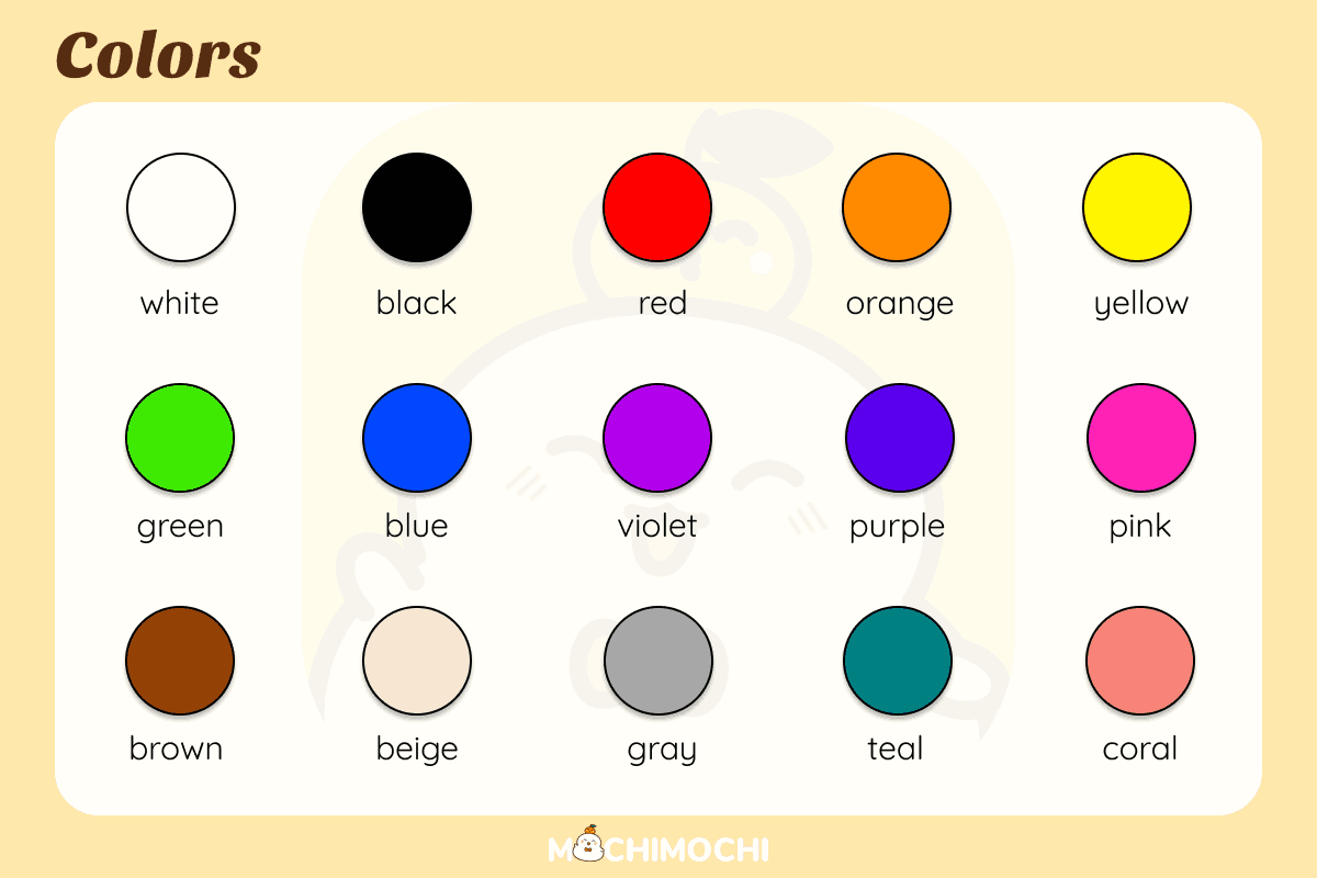 Ngoài ra, bé cũng cần học thêm những màu sắc khác như màu trắng (“white”), màu đen (“black”), màu xám (“gray”) và màu nâu (“brown”). Những từ vựng này không chỉ giúp bé nhận diện màu sắc mà còn phát triển khả năng ngôn ngữ của trẻ.