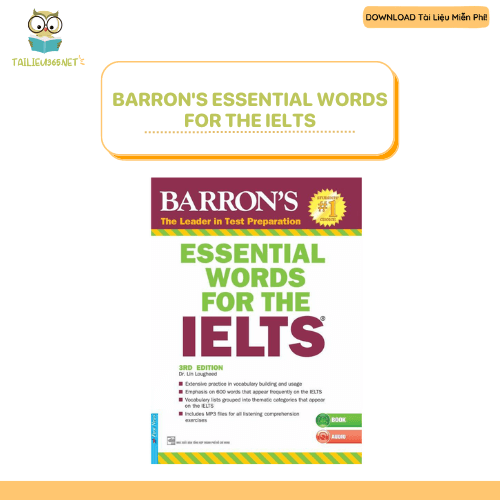 Nếu bạn muốn nâng cao vốn từ để cải thiện điểm số IELTS, Barron’s Essential Words For The IELTS là một lựa chọn đáng cân nhắc. Sách không quá khó, cách trình bày rõ ràng, dễ hiểu và có thể học theo từng chủ đề hoặc theo thứ tự đều được. Việc kết hợp nghe, đọc, viết và nói trong sách cũng giúp bạn phát triển toàn diện các kỹ năng cần thiết cho kỳ thi.