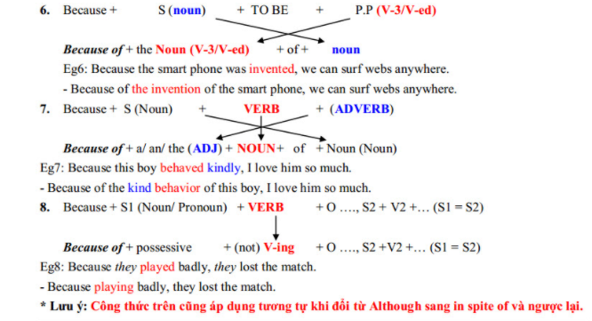 Điều quan trọng là phải lưu ý rằng “because” không thể đứng trước danh từ hoặc V-ing. Nếu bạn gặp trường hợp cần diễn đạt nguyên nhân với danh từ, hãy chọn “because of” để tránh nhầm lẫn. Như vậy, việc phân biệt hai cấu trúc này sẽ giúp bạn diễn đạt ý kiến một cách chính xác hơn trong tiếng Anh.