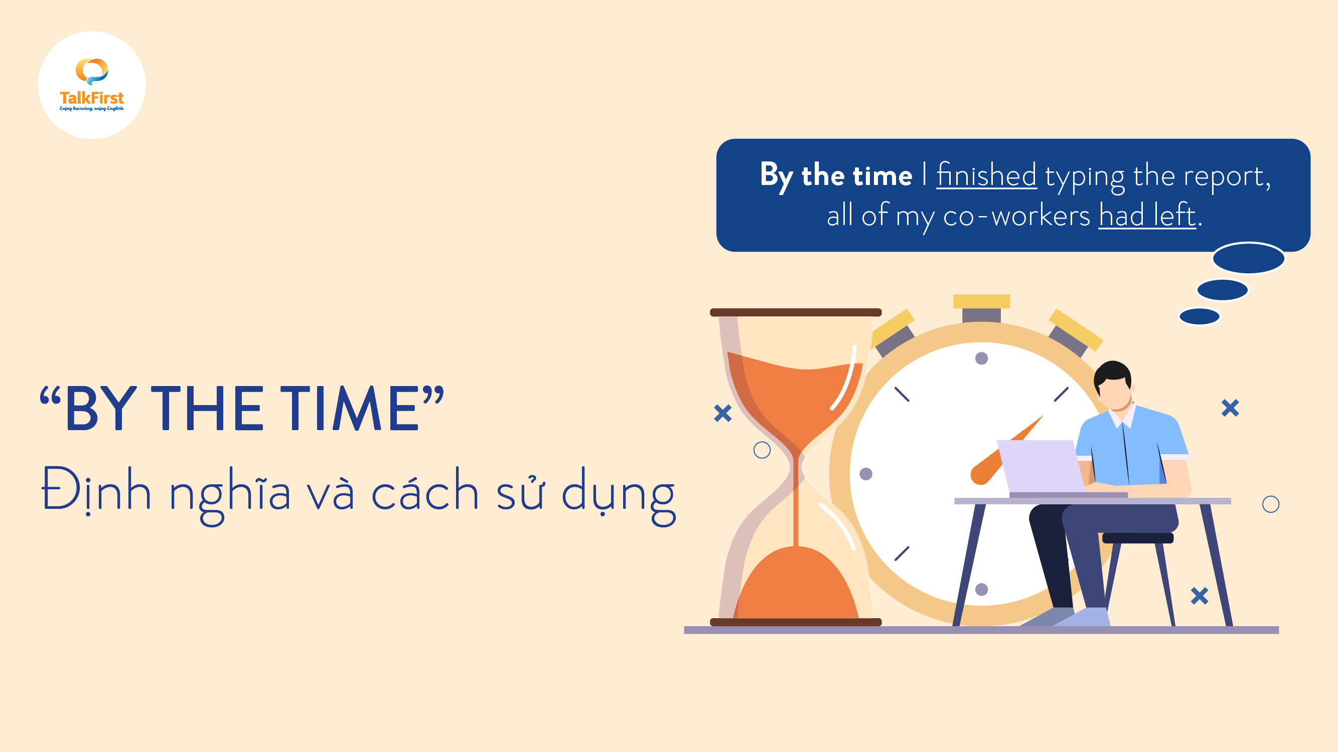 Trong tiếng Anh, các cụm từ chỉ thời gian đóng vai trò quan trọng giúp câu văn trở nên rõ ràng và mạch lạc hơn. Một trong những cấu trúc phổ biến mà người học cần nắm vững là “By the time”. Vậy “By the time” nghĩa là gì, được sử dụng như thế nào và trong những ngữ cảnh nào thì phù hợp nhất? Ở bài viết này, chúng ta sẽ cùng tìm hiểu chi tiết về ý nghĩa, cách dùng, cấu trúc của “By the time”, phân biệt với “When”, những lưu ý quan trọng cũng như luyện tập qua các bài tập mẫu giúp bạn sử dụng thành thạo hơn trong giao tiếp và viết tiếng Anh.