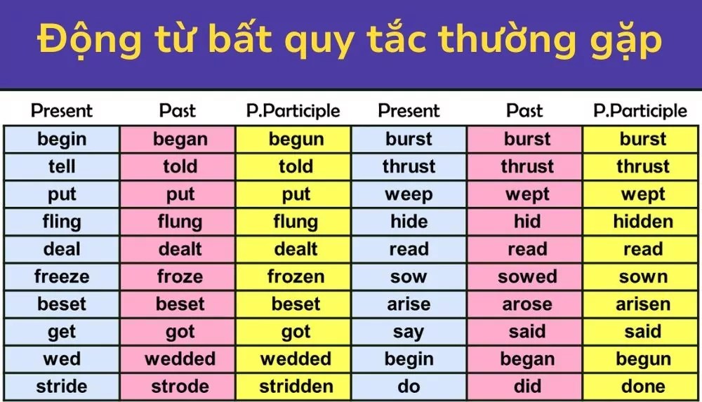 Danh Sách Động Từ Bất Quy Tắc Thường Gặp