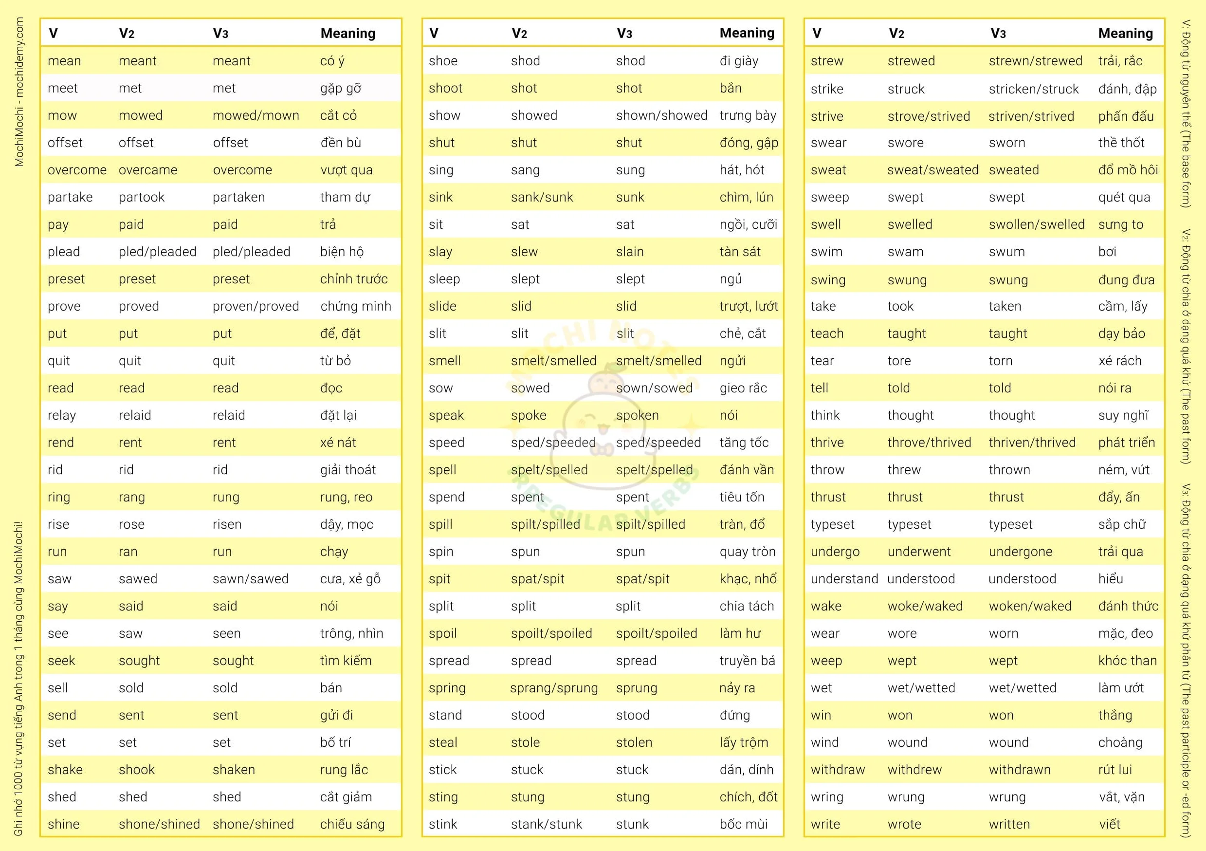 Học ngay động từ bất quy tắc tiếng Anh phổ biến nhất