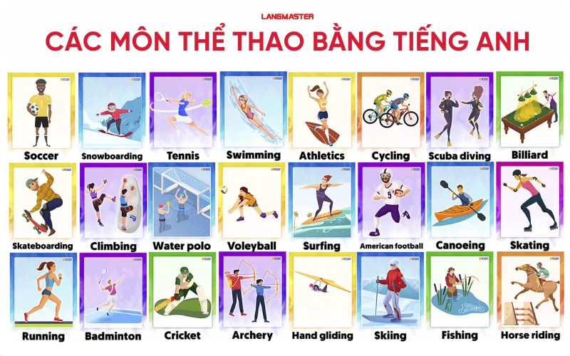 Thể thao không chỉ giúp chúng ta rèn luyện sức khỏe mà còn là một chủ đề rất thú vị trong giao tiếp hàng ngày, đặc biệt là bằng tiếng Anh. Việc nắm vững từ vựng về các môn thể thao trong tiếng Anh sẽ giúp bạn tự tin hơn khi trò chuyện, học tập hay làm việc trong môi trường quốc tế. Trong bài viết này, chúng ta sẽ cùng khám phá các môn thể thao phổ biến bằng tiếng Anh, từ vựng liên quan, tên gọi chính xác cũng như danh sách các bộ môn thể thao để bạn dễ dàng tra cứu và sử dụng khi cần thiết.