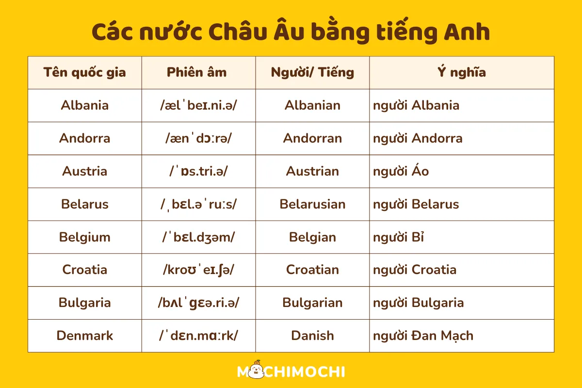 Cuối cùng, hãy cùng khám phá thêm nhiều tên gọi và phát âm khác nhau trong danh sách tên quốc gia, các bạn nhé! Điều này sẽ giúp bạn tự tin hơn trong việc giao tiếp và nâng cao vốn từ vựng tiếng Anh của mình.