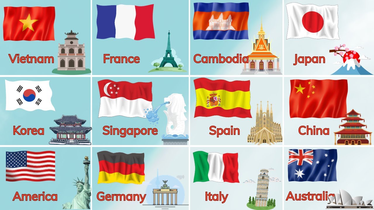 Trong quá trình học tiếng Anh, việc nắm vững tên gọi các quốc gia bằng tiếng Anh là rất cần thiết. Hôm nay, mình xin chia sẻ với các bạn một số tên quốc gia phổ biến. Ví dụ, Việt Nam được gọi là “Vietnam”, trong khi Hoa Kỳ là “United States” hoặc đơn giản là “America”.