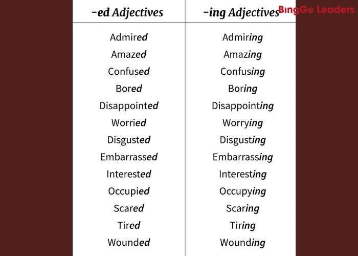 Một số ví dụ phổ biến như “bored” (buồn chán) và “boring” (gây buồn chán) giúp người học phân biệt rõ hơn. Chính vì thế, việc nắm vững cách sử dụng tính từ đuôi “-ed” sẽ giúp người học diễn đạt cảm xúc một cách tự nhiên và chính xác hơn trong giao tiếp.