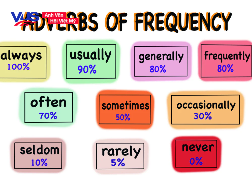 Trạng từ chỉ tần suất (adverbs of frequency) là một phần quan trọng trong tiếng Anh, giúp chúng ta diễn tả mức độ thường xuyên của các hành động hay sự kiện. Những từ như “always” (luôn luôn), “usually” (thường xuyên), “often” (thường), “sometimes” (thỉnh thoảng), và “rarely” (hiếm khi) sẽ giúp bạn truyền đạt thông điệp rõ ràng hơn. Có hai cấu trúc chính khi sử dụng chúng: một là “S + to be + [trạng từ]” và hai là “S + [trạng từ] + V (thường)”.