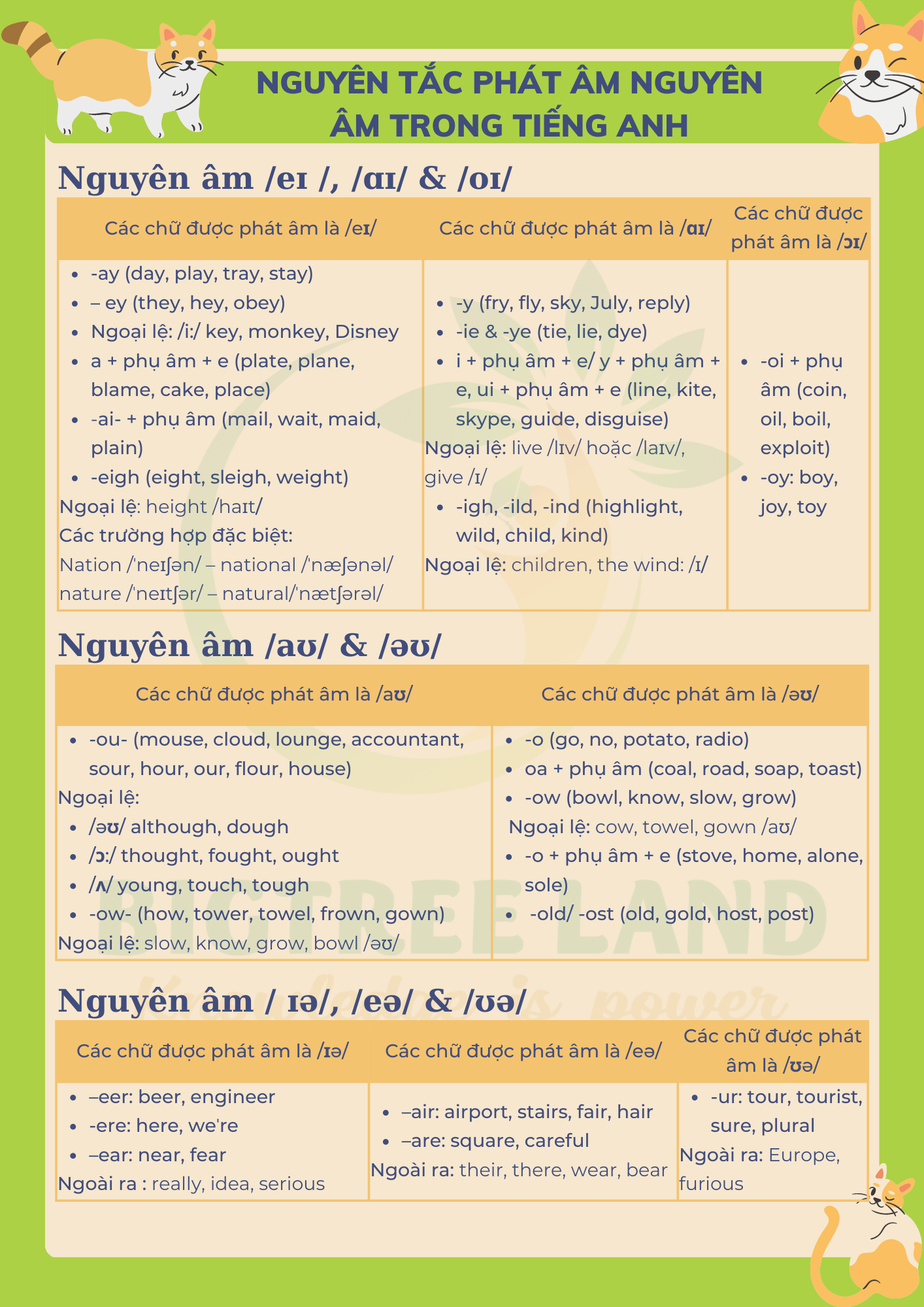 Trong quá trình học tiếng Anh, việc nắm vững phát âm là rất quan trọng, không chỉ để giao tiếp chính xác mà còn giúp nâng cao điểm số trong các bài kiểm tra. Các dạng bài tập phát âm thường gặp bao gồm phát âm phụ âm, nguyên âm cũng như các quy tắc phát âm đuôi “s”, “es” và “ed”. Đặc biệt, quy tắc phát âm đuôi “s” và “es” được chia thành ba nhóm: phát âm là /s/, /z/ hoặc /ɪz/ tùy thuộc vào âm cuối của từ, như trong từ “cats” /kæts/ hay “dogs” /dɔɡz/.