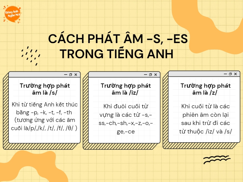 Một mẹo nhỏ để ghi nhớ là nếu từ kết thúc bằng âm vô thanh thì đuôi sẽ phát âm là /s/, còn nếu là âm thanh thì phát âm là /iz/. Hãy thường xuyên thực hành để cải thiện kỹ năng phát âm của bạn nhé!