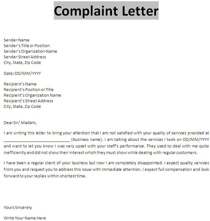 Mẫu Thư Phàn Nàn Bằng Tiếng Anh