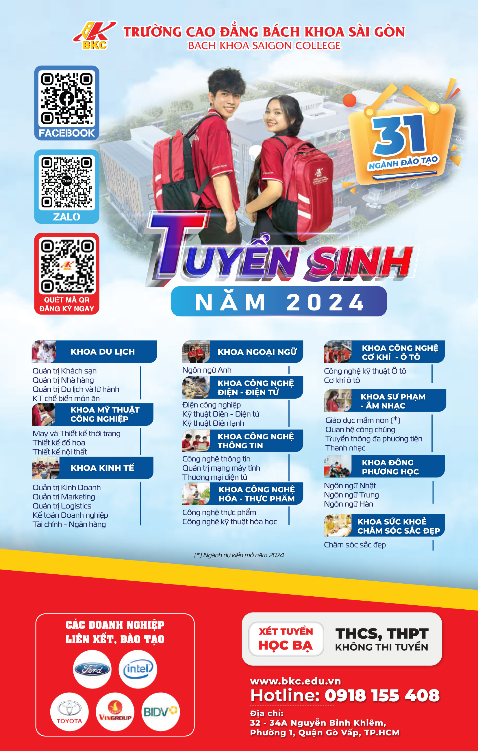 Nhìn chung, Cao đẳng Bách Khoa Sài Gòn là lựa chọn phù hợp cho các bạn muốn học tập trong môi trường đào tạo bài bản, chi phí hợp lý và có nhiều hỗ trợ để giảm bớt gánh nặng tài chính trong quá trình học tập.