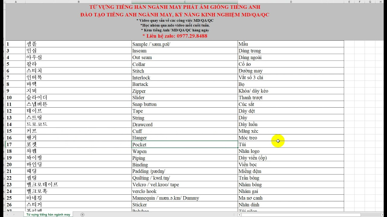 Ngành may mặc là một lĩnh vực có mối liên hệ ngày càng chặt chẽ với Hàn Quốc, đặc biệt trong bối cảnh hợp tác và đầu tư nước ngoài ngày càng phát triển. Việc trang bị vốn từ vựng…