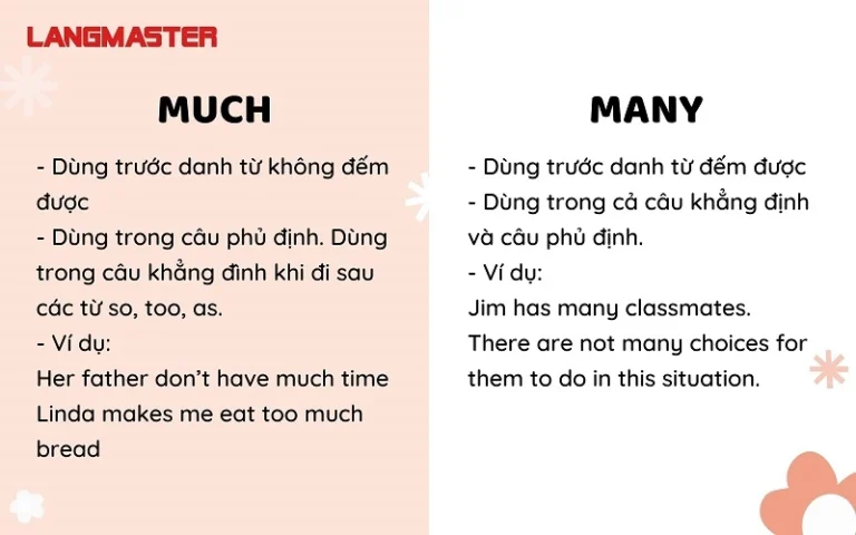 Trong tiếng Anh, từ “much” là một trong những từ thường gặp và gây không ít băn khoăn cho người học, đặc biệt khi phân biệt với từ “many”. Vậy “much” có đếm được không? “Much” dùng trong những trường…