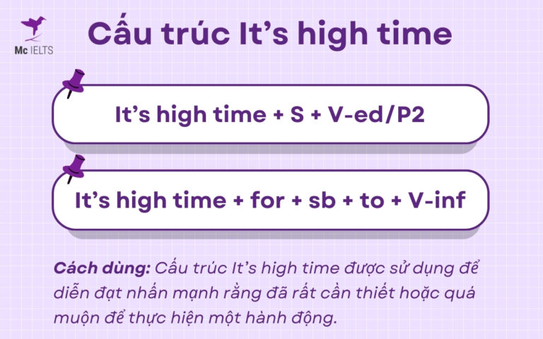 Khi học tiếng Anh, bạn sẽ thường xuyên bắt gặp những cấu trúc độc đáo giúp câu văn trở nên tự nhiên và thể hiện rõ ý nghĩa. Một trong số đó là cấu trúc “It’s high time”. Đây là…