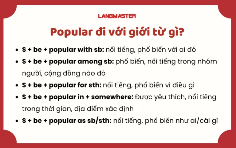 Trong tiếng Anh, “popular” là một từ được sử dụng rất phổ biến để diễn tả mức độ được yêu thích hoặc ưa chuộng bởi nhiều người. Tuy nhiên, không phải ai cũng nắm rõ “popular” đi với giới từ…