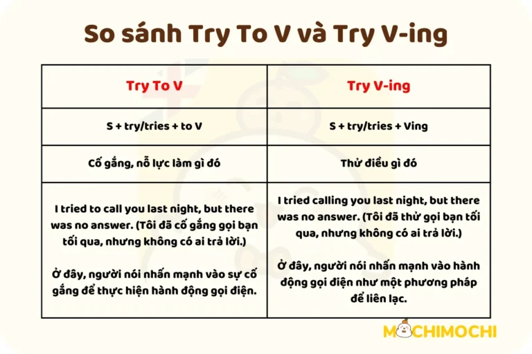 Trong tiếng Anh, những động từ có thể kết hợp với cả to-infinitive và V-ing thường gây khó khăn cho người học, đặc biệt là “try to” và “try Ving”. Mặc dù hai cấu trúc này tưởng chừng giống nhau,…