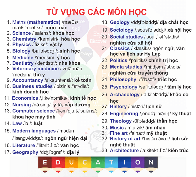 Trong chương trình học phổ thông cũng như trong các cuộc giao tiếp quốc tế, việc sử dụng từ ngữ tiếng Anh để chỉ các môn học đã trở nên vô cùng quen thuộc. Đặc biệt, môn Hóa học—một trong…