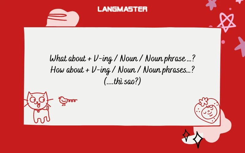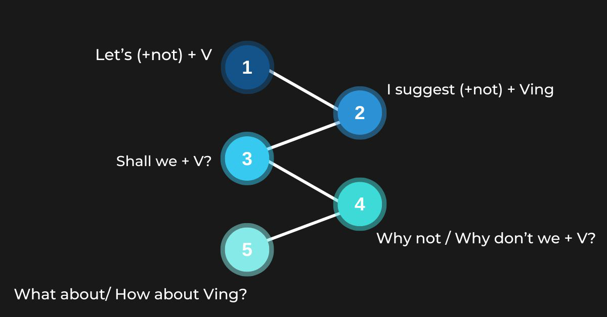 Ngoài ra, bạn cũng có thể thử với “How about / What about + V-ing?” Ví dụ, “How about visiting our parents this weekend?” (Cuối tuần này chúng ta về thăm bố mẹ đi?) hoặc “What about trying that new restaurant?” (Còn về việc thử nhà hàng mới thì sao?). Cách diễn đạt này không chỉ giúp bạn đưa ra lời đề nghị mà còn mở ra cơ hội cho người khác tham gia vào cuộc trò chuyện.