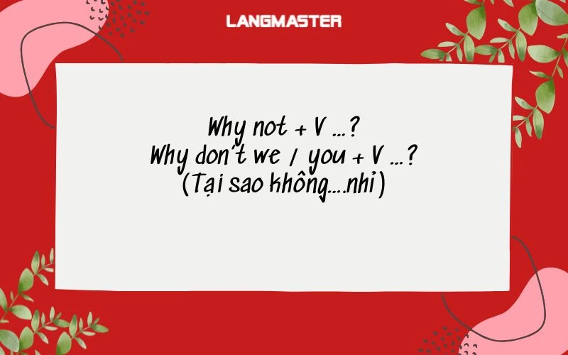 Cuối cùng, “Why don’t we + V?” là một cấu trúc khác cũng rất tiện lợi. Bạn có thể nói “Why don’t we have a picnic this weekend?” (Tại sao chúng ta không đi dã ngoại cuối tuần này nhỉ?). Cách nói này thể hiện sự tích cực trong việc khuyến khích người khác tham gia. Những cấu trúc này thực sự hữu ích trong giao tiếp hàng ngày!