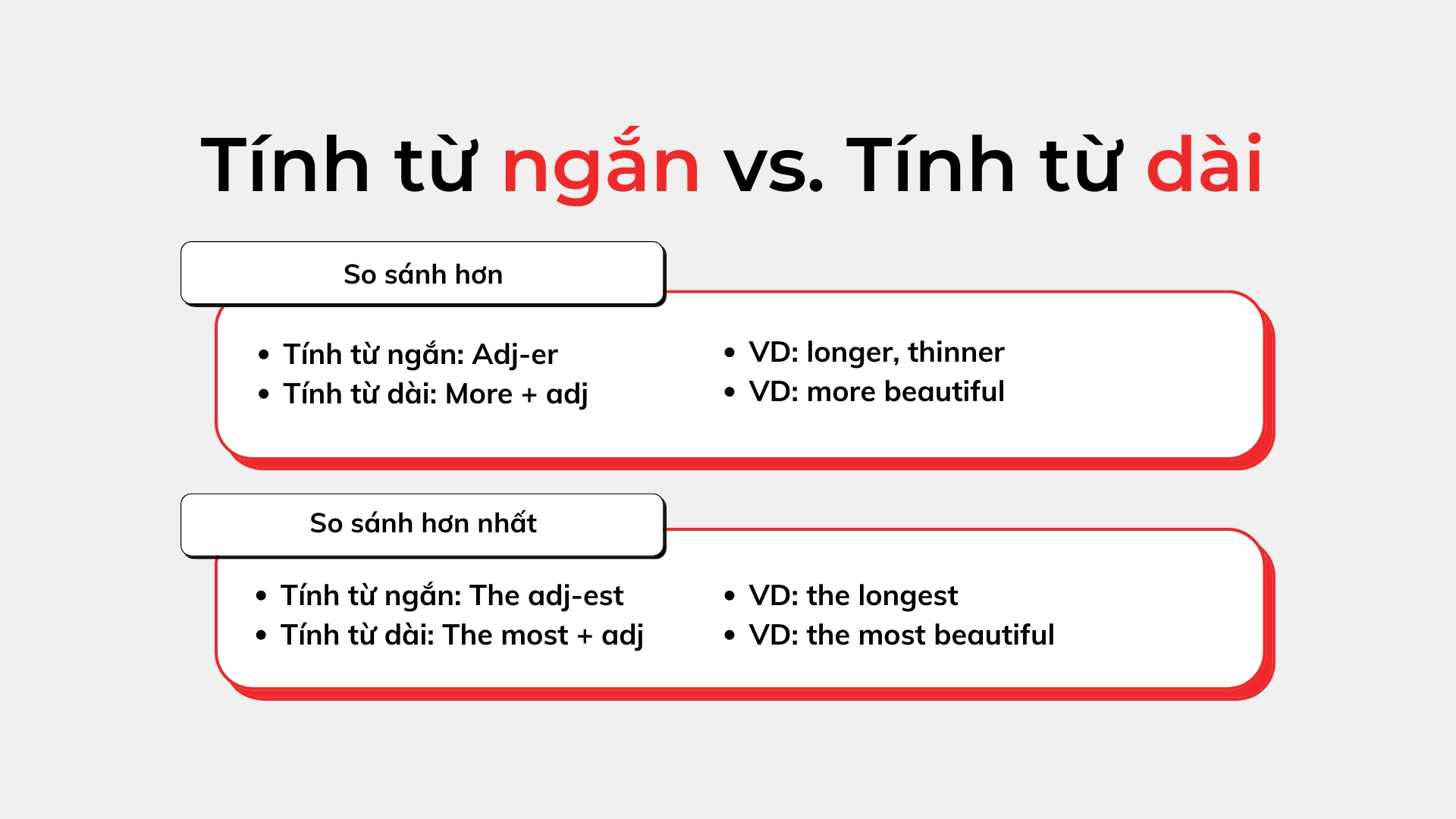 Ngoài ra, chúng ta cũng có thể sử dụng “more” trước các tính từ dài hơn. Chẳng hạn, “more beautiful” hay “more interesting” là những ví dụ điển hình. Việc học thuộc các cấu trúc này sẽ giúp chúng ta viết và nói chính xác hơn.