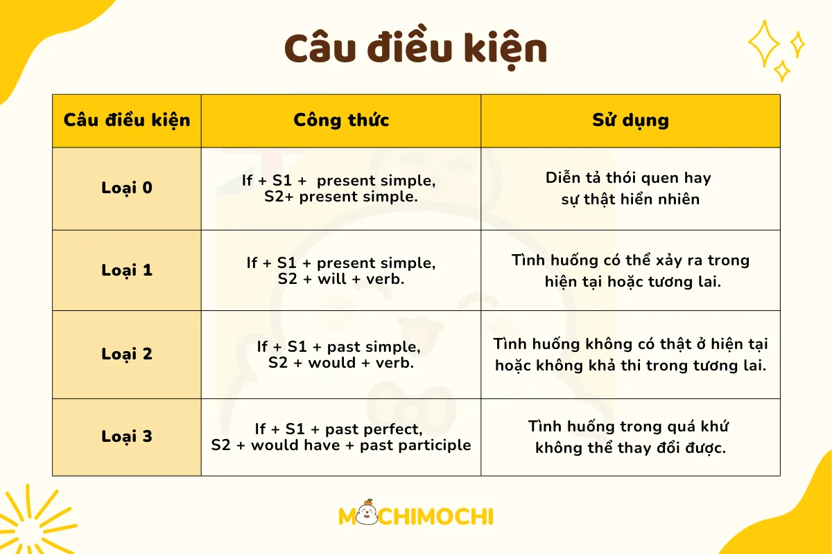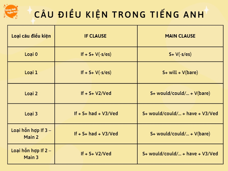 Câu điều kiện trong tiếng Anh là một phần rất quan trọng và thú vị, giúp chúng ta diễn đạt những giả thuyết hay sự kiện xảy ra dựa trên một điều kiện nhất định. Có bốn loại câu điều kiện chính: loại 0, 1, 2 và 3. Mỗi loại mang đến một cách diễn đạt khác nhau về mối liên hệ giữa điều kiện và kết quả.