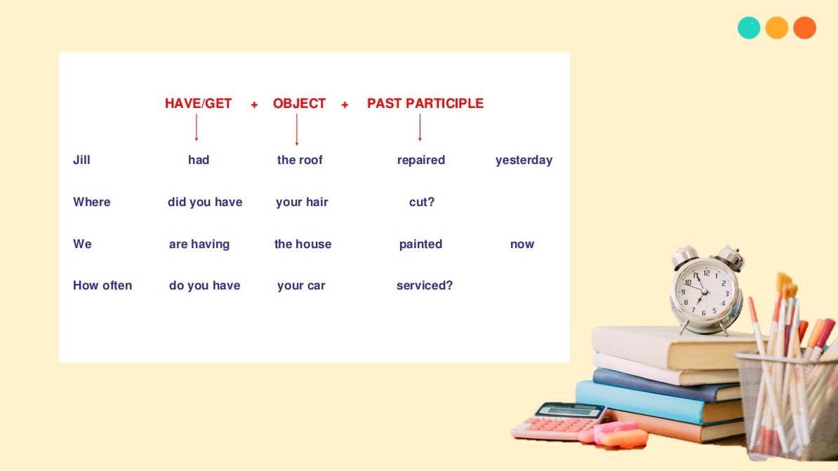 Có hai dạng chính trong cấu trúc này: dạng chủ động và bị động. Trong dạng chủ động, câu sẽ có cấu trúc như “S + have/get + someone + V (bare infinitive),” trong khi ở dạng bị động, ta sử dụng “S + have/get + something + V-ed/V3.” Ví dụ, “I had my car washed by my dad” hoặc “We are getting our house painted next week” thể hiện việc nhờ những người khác làm việc cho mình.