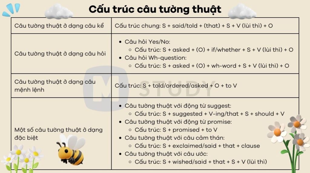 Câu tường thuật đặc biệt là một phần quan trọng trong ngữ pháp tiếng Anh, giúp chúng ta diễn đạt lại những gì người khác đã nói. Đây là cách mà chúng ta truyền tải thông tin một cách tự nhiên và chính xác trong giao tiếp hằng ngày. Về cấu trúc, câu tường thuật có thể thay đổi linh hoạt tùy thuộc vào hoàn cảnh và mục đích sử dụng.