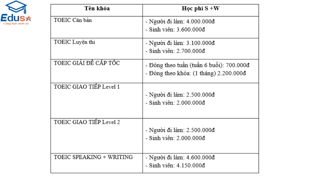 Ngoài ra, nếu bạn đang có ý định học, chi phí học TOEIC 4 kỹ năng tại các trung tâm uy tín hiện dao động từ 6.000.000 đến 12.000.000 VNĐ. Đây là một khoản đầu tư xứng đáng cho tương lai nghề nghiệp của bạn.
