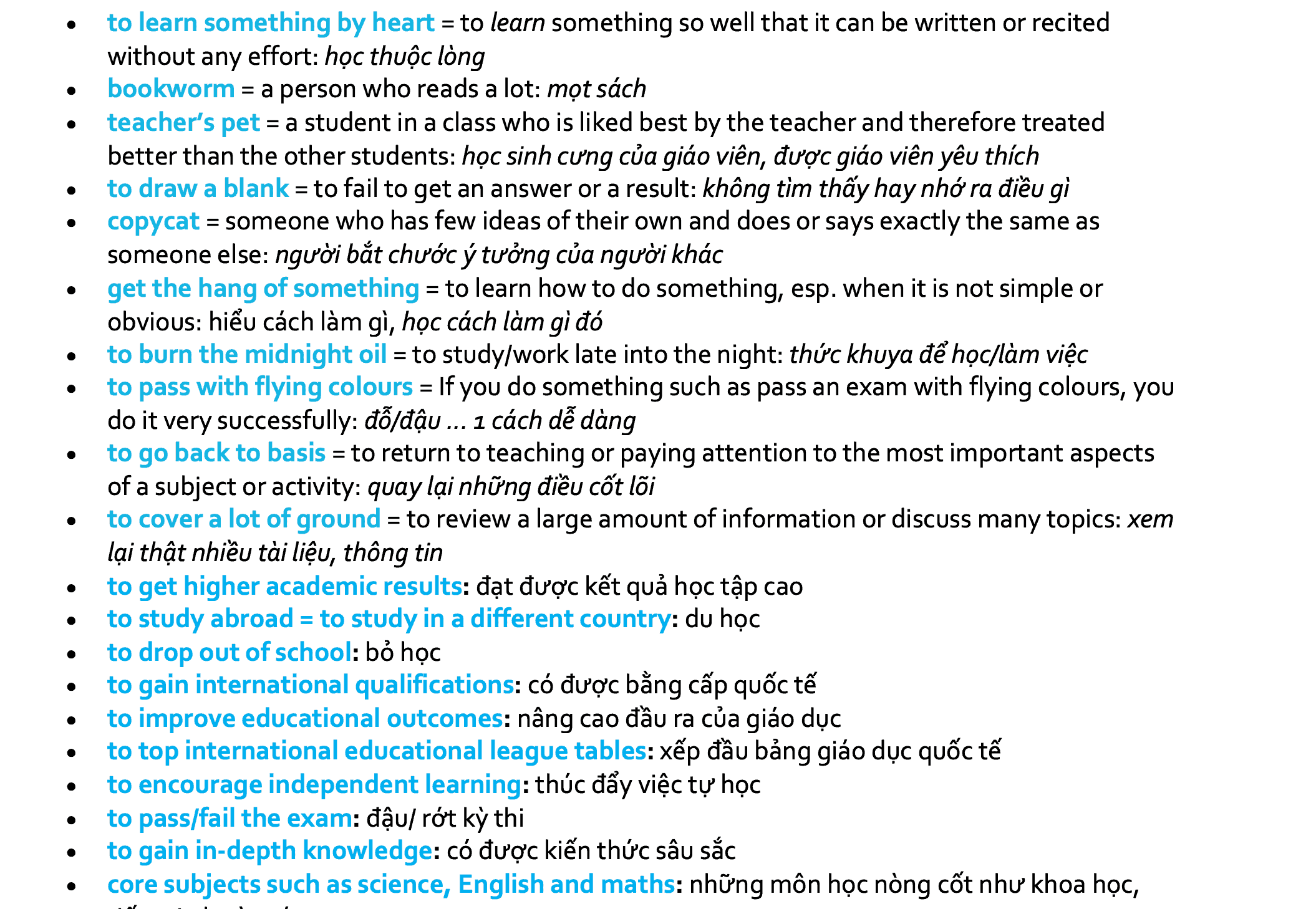 Hệ thống giáo dục Việt Nam đã đạt được nhiều thành tựu nổi bật, đặc biệt là trong lần đầu tham gia Chương trình Đánh giá Học sinh Quốc tế (PISA) năm 2012. Dù vậy, tình trạng học theo cách truyền thống vẫn tồn tại, với phương pháp học chủ yếu là ghi nhớ. Dù đã có nhiều cố gắng cải cách, giáo dục vẫn là ưu tiên hàng đầu của xã hội Việt Nam.