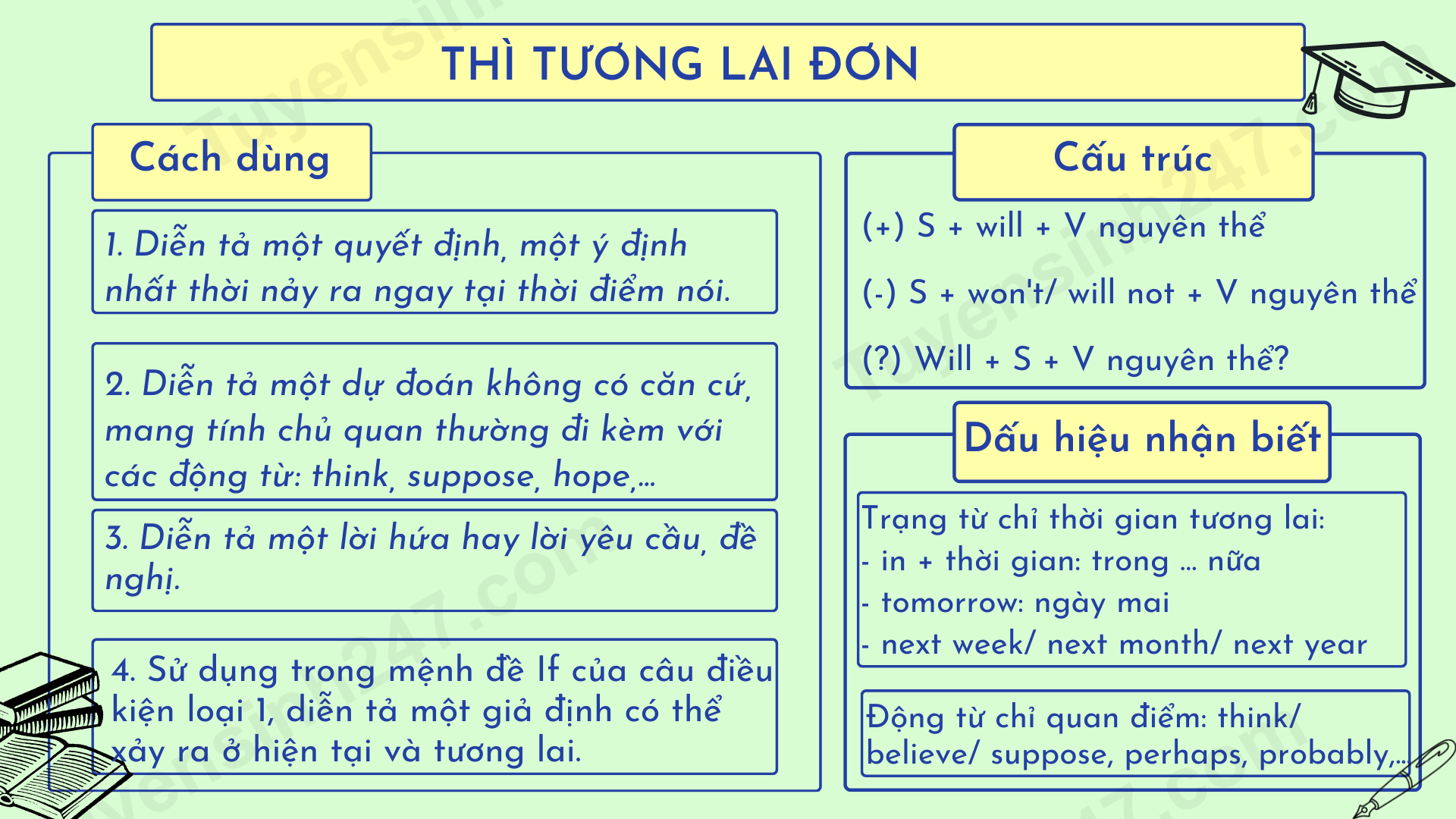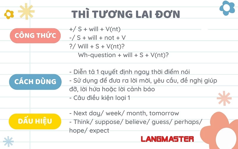 Điều dễ nhớ hơn nữa là động từ chính trong thì tương lai đơn luôn ở dạng nguyên thể, không cần phải chia theo chủ ngữ. Chỉ với những dấu hiệu và cấu trúc này, bạn đã có thể nắm vững và vận dụng thì tương lai đơn một cách tự tin trong giao tiếp hàng ngày.