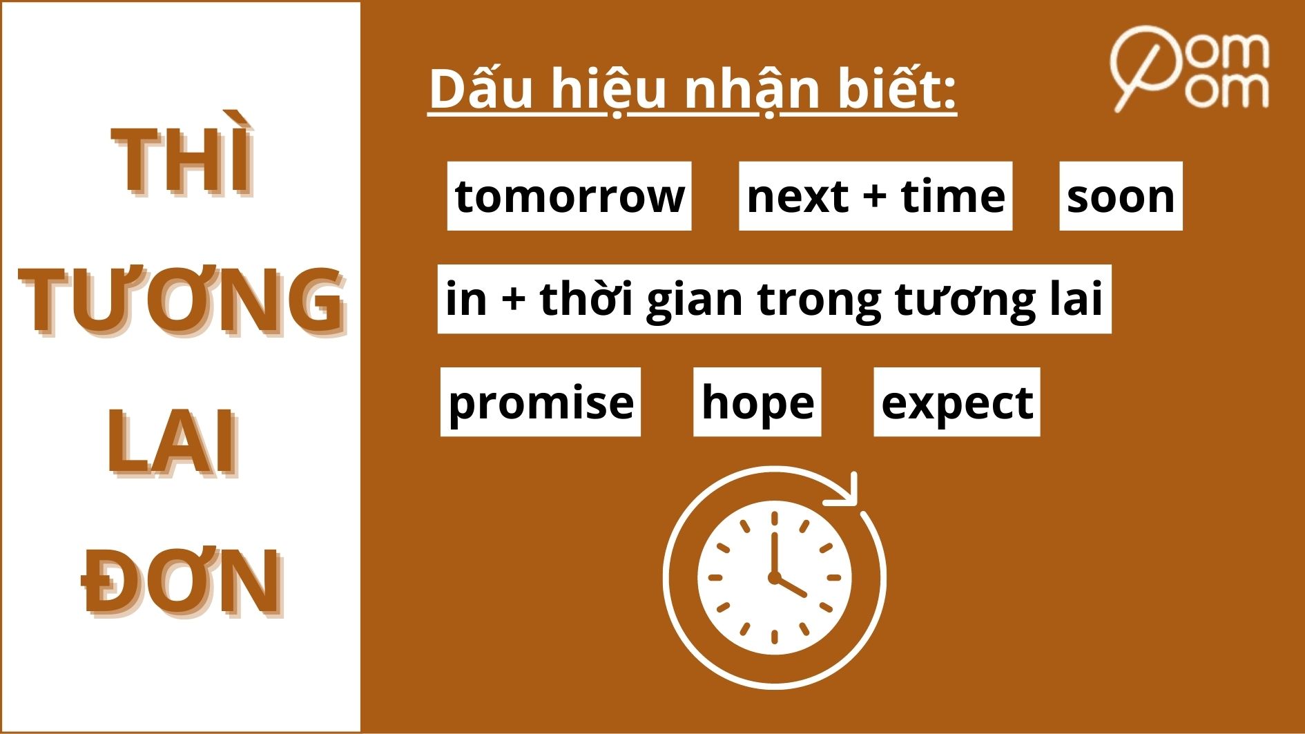Khi học tiếng Anh, thì Tương Lai Đơn (Simple Future Tense) là một trong những chủ điểm ngữ pháp quan trọng giúp bạn diễn đạt các dự định, kế hoạch hay sự kiện sẽ xảy ra trong tương lai. Tuy nhiên, để sử dụng chính xác thì này, bạn cần nhận biết được các dấu hiệu nhận biết của Tương Lai Đơn. Bài viết sau đây sẽ tổng hợp những dấu hiệu thường gặp của thì Tương Lai Đơn, cách sử dụng, các từ nhận biết phổ biến, ví dụ minh họa và các bài tập thực hành, giúp bạn dễ dàng nắm vững kiến thức và áp dụng hiệu quả vào giao tiếp cũng như làm bài tập.