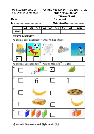 Đề thi thường bao gồm các phần kiểm tra khả năng nghe, phát âm và ghi nhớ từ, câu đơn giản. Các câu hỏi như “school” hay “ruler” được tổ chức để bé dễ dàng tiếp cận. Thông qua việc lắng nghe và nhắc lại, các em sẽ có cơ hội cải thiện kỹ năng phát âm và từ vựng.