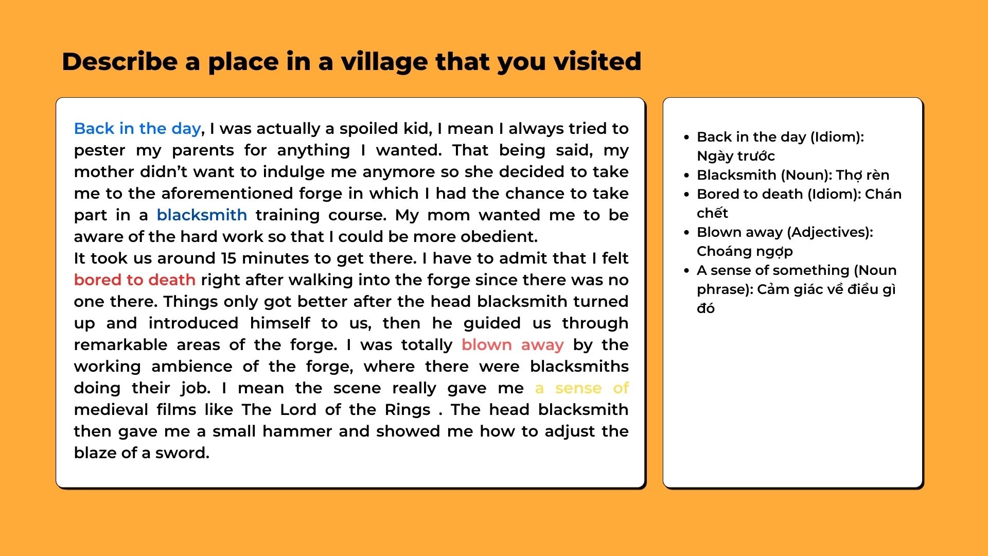 Trong chuyến đi này, chúng tôi đã khám phá nhiều địa điểm thú vị, bao gồm Bà Nà Hills với cây cầu Vàng nổi tiếng. Hành trình bằng xe đạp dạo chơi quanh những ngôi đền cổ và chợ địa phương cũng mang đến cho tôi nhiều trải nghiệm đáng nhớ. Tôi còn được thưởng thức các món ăn đặc sản như mì quảng và bánh xèo, khiến tâm hồn mình thêm phần gần gũi với văn hóa nơi đây.