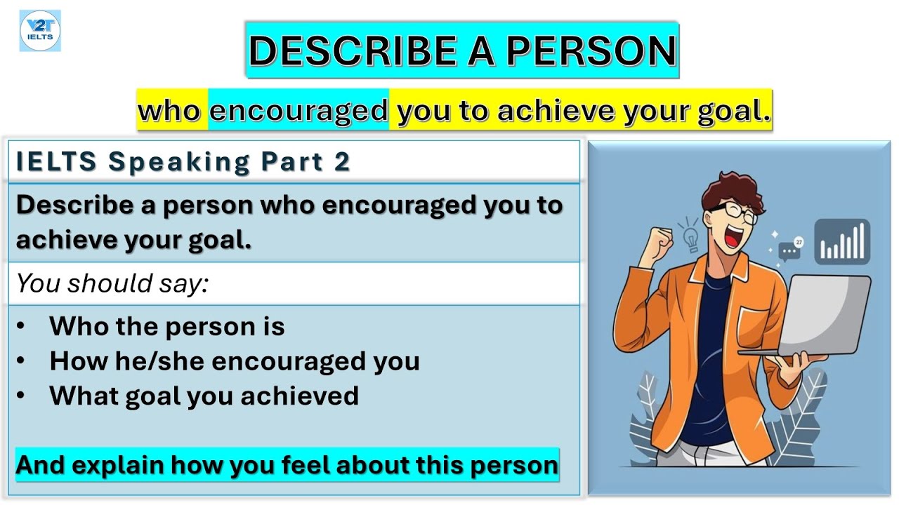 Trong cuộc sống, ai cũng từng trải qua những khoảnh khắc khó khăn, chán nản trên con đường thực hiện mục tiêu của mình. Đối với tôi, động lực và sự khích lệ từ người khác thường đóng vai trò quan trọng giúp tôi vượt qua thử thách, không bỏ cuộc giữa chừng. Đặc biệt, có một người đã luôn bên cạnh, cổ vũ và truyền cảm hứng cho tôi để tôi có thể quyết tâm theo đuổi ước mơ của bản thân. Người ấy không chỉ cho tôi niềm tin vào chính mình, mà còn giúp tôi hiểu rằng chỉ cần nỗ lực hết mình, mọi khó khăn rồi cũng sẽ vượt qua.