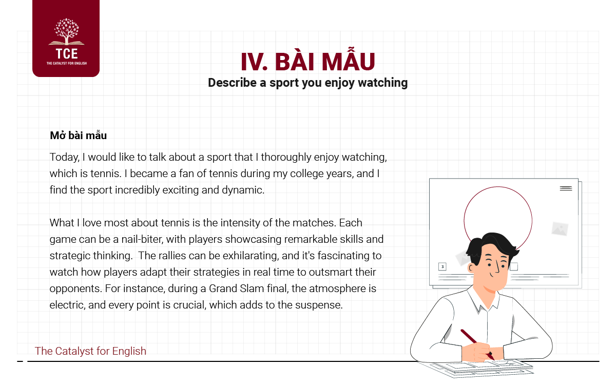 Kết thúc bài viết, trải nghiệm xem sự kiện thể thao mà tôi yêu thích không chỉ mang lại niềm vui mà còn giúp tôi cảm nhận được sức mạnh của tinh thần đồng đội và bản lĩnh của các vận động viên. Những khoảnh khắc thăng trầm, những pha bóng mãn nhãn và niềm đam mê cháy bỏng đã khiến tôi hiểu rõ hơn về giá trị của thể thao. Đó không chỉ là một cuộc thi, mà còn là một lễ hội kết nối mọi người, truyền cảm hứng và khơi dậy niềm tự hào dân tộc. Chắc chắn rằng tôi sẽ luôn ghi nhớ sự kiện này trong lòng.