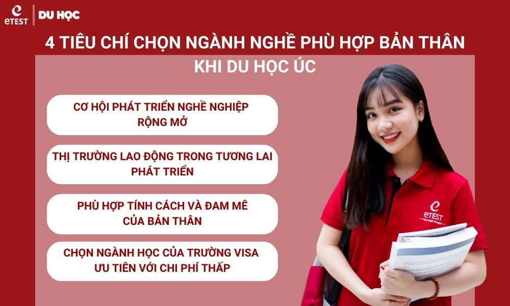 Du học Úc ngày càng trở thành sự lựa chọn hàng đầu của nhiều sinh viên quốc tế. Việc chọn ngành học phù hợp là rất quan trọng, và các ngành như Kinh doanh, IT, Kỹ thuật, Điều dưỡng và Giáo dục hiện đang chiếm ưu thế. Những ngành này không chỉ có cơ hội việc làm cao mà còn mang lại mức lương hấp dẫn. Chẳng hạn, trong ngành Kỹ thuật, bạn có tiềm năng kiếm được mức thu nhập cao và dễ dàng được định cư tại Úc.