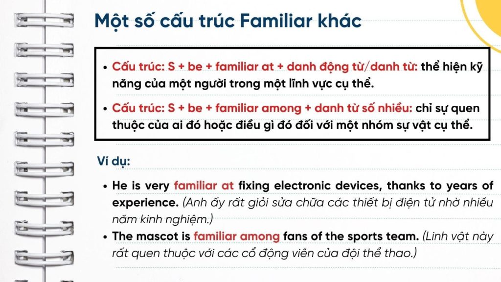 Việc nắm rõ cách sử dụng “familiar” với các giới từ này sẽ giúp bạn giao tiếp tự nhiên và chính xác hơn trong tiếng Anh!