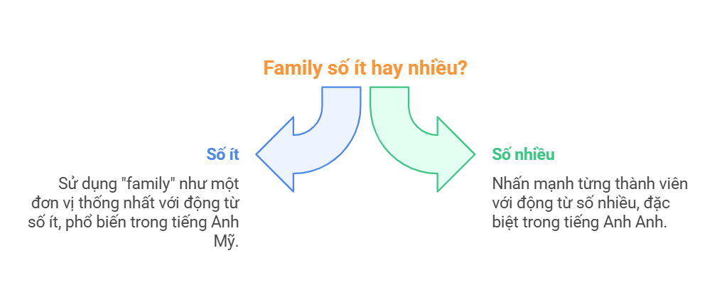 Một điểm thú vị khác là cách dùng trong tiếng Anh Anh và tiếng Anh Mỹ: “family are” thường được dùng trong tiếng Anh Anh, trong khi “family is” phổ biến hơn ở tiếng Anh Mỹ. Những điều nhỏ nhặt này có thể khiến bạn nhầm lẫn, nhưng với một chút chú ý, bạn sẽ sử dụng chúng một cách tự tin.