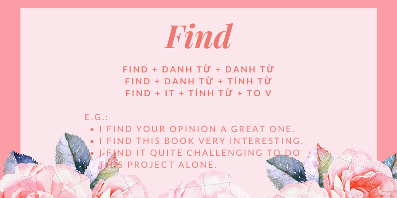 Một điểm thú vị là “find” không thường đi với “to V”. Thay vào đó, bạn có thể sử dụng “find it + tính từ + to V”, chẳng hạn như “I find it easy to learn English” (Tôi thấy việc học tiếng Anh dễ dàng). Cách dùng này tạo nên sự gần gũi và tự nhiên trong giao tiếp hàng ngày. Hãy thử áp dụng những cấu trúc này để làm phong phú thêm khả năng giao tiếp của bạn nhé!