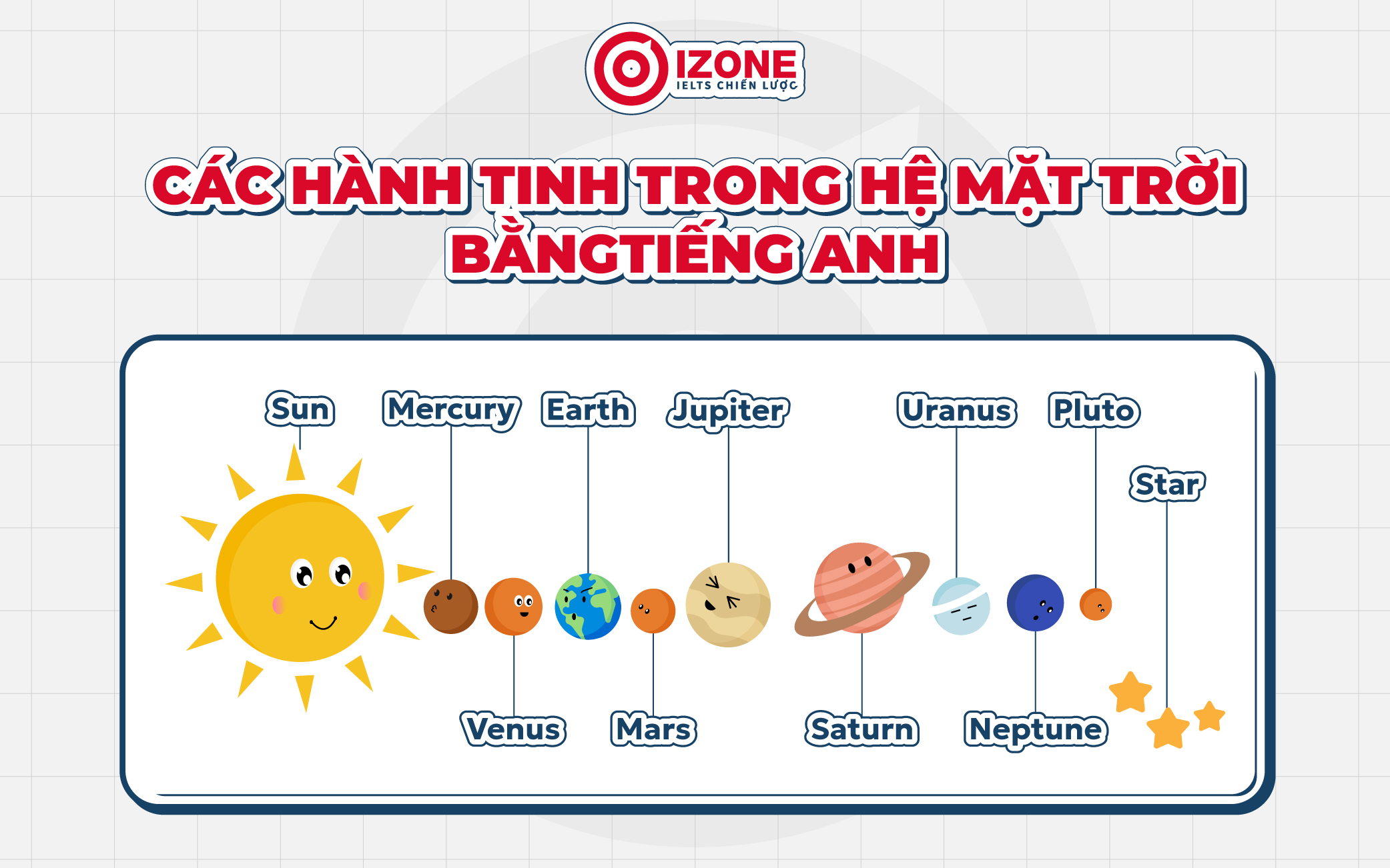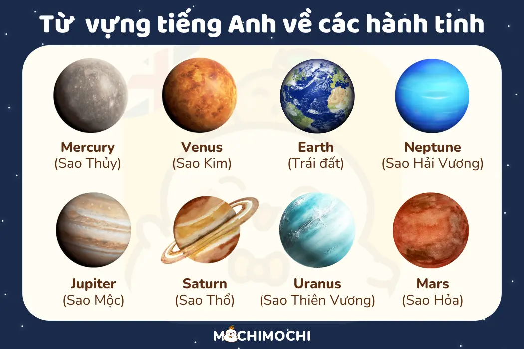 Hành tinh hệ mặt trời tiếng Anh rực rỡ sắc màu