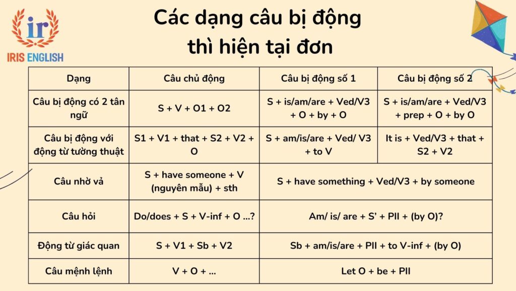 Ngoài ra, bạn cũng có thể thấy câu bị động được dùng trong bốn dạng chính: khẳng định, phủ định, câu hỏi Yes/No và Wh- questions. Việc thành thạo cách sử dụng câu bị động này không chỉ giúp bạn giao tiếp tốt hơn mà còn làm phong phú thêm vốn từ vựng và cấu trúc câu trong tiếng Anh. Hãy luyện tập thường xuyên để có thể áp dụng một cách tự nhiên nhé!