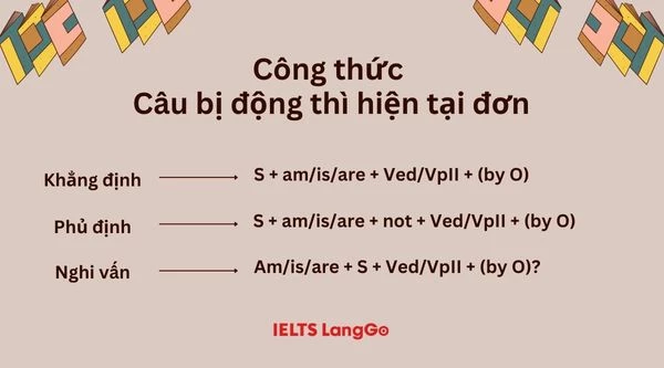 Cấu trúc hiện tại đơn bị động (Present Simple Passive) là một phần thiết yếu trong ngữ pháp tiếng Anh. Cấu trúc cơ bản của câu bị động hiện tại đơn là: S + am/is/are + V3/PP + (by O). Ở đây, chủ ngữ (S) sẽ là đối tượng nhận hành động, trong khi tác nhân thực hiện hành động có thể được nhắc đến bằng cách sử dụng “by” theo sau.