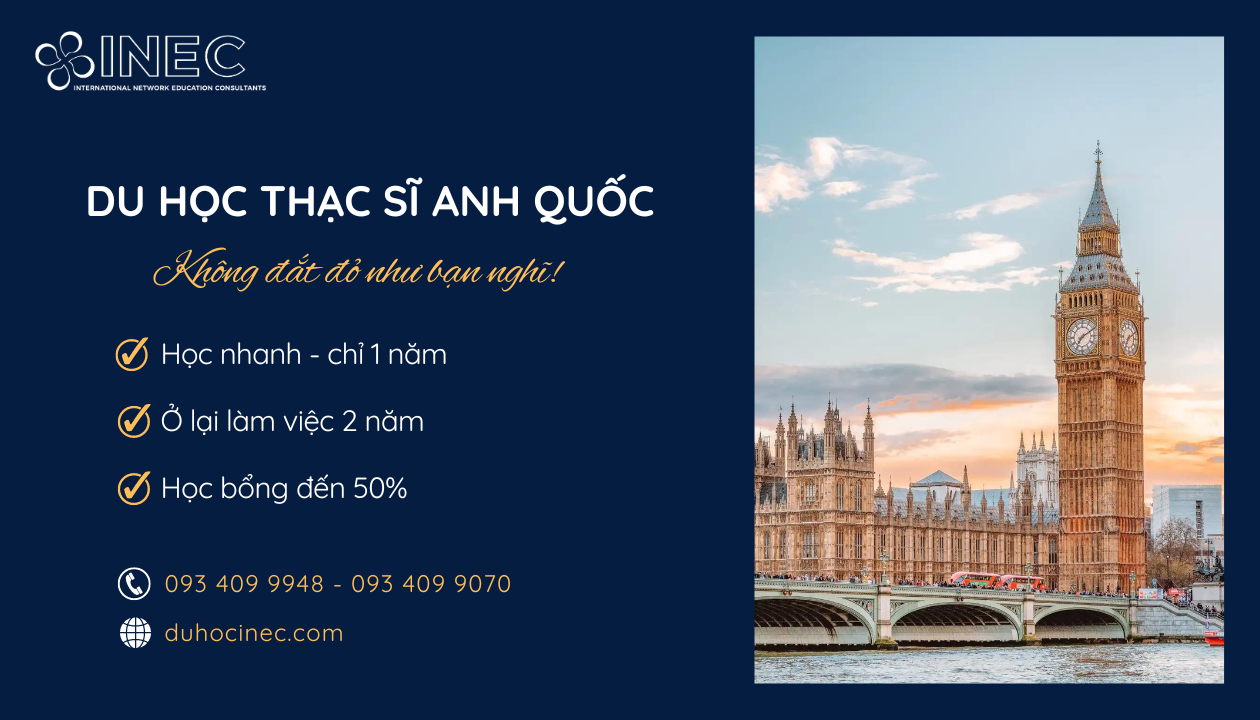 Du học thạc sĩ tại Anh luôn là ước mơ của nhiều bạn trẻ Việt Nam bởi chất lượng đào tạo cùng môi trường học tập hiện đại. Tuy nhiên, chi phí học tập tại quốc gia này không hề nhỏ, khiến học bổng trở thành “tấm vé vàng” giúp nhiều sinh viên thực hiện ước mơ du học. Vậy làm sao để xin học bổng du học thạc sĩ Anh thành công? Bài viết này sẽ giúp bạn hiểu rõ các điều kiện, loại học bổng, quy trình hồ sơ, những kinh nghiệm quý giá, cũng như lợi ích và thời gian phù hợp để “săn” học bổng tại các trường đại học hàng đầu nước Anh.