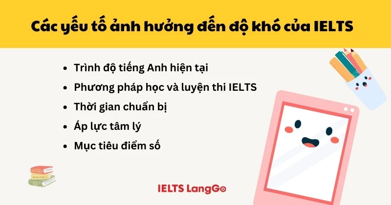 Học IELTS có khó hay dễ? Thật ra, câu trả lời phụ thuộc vào từng người, vào xuất phát điểm và mục tiêu học tập của họ. Kỳ thi IELTS được đánh giá là khó, nhưng nếu bạn có quyết tâm và phương pháp học đúng đắn, mọi thứ sẽ dễ dàng hơn rất nhiều.