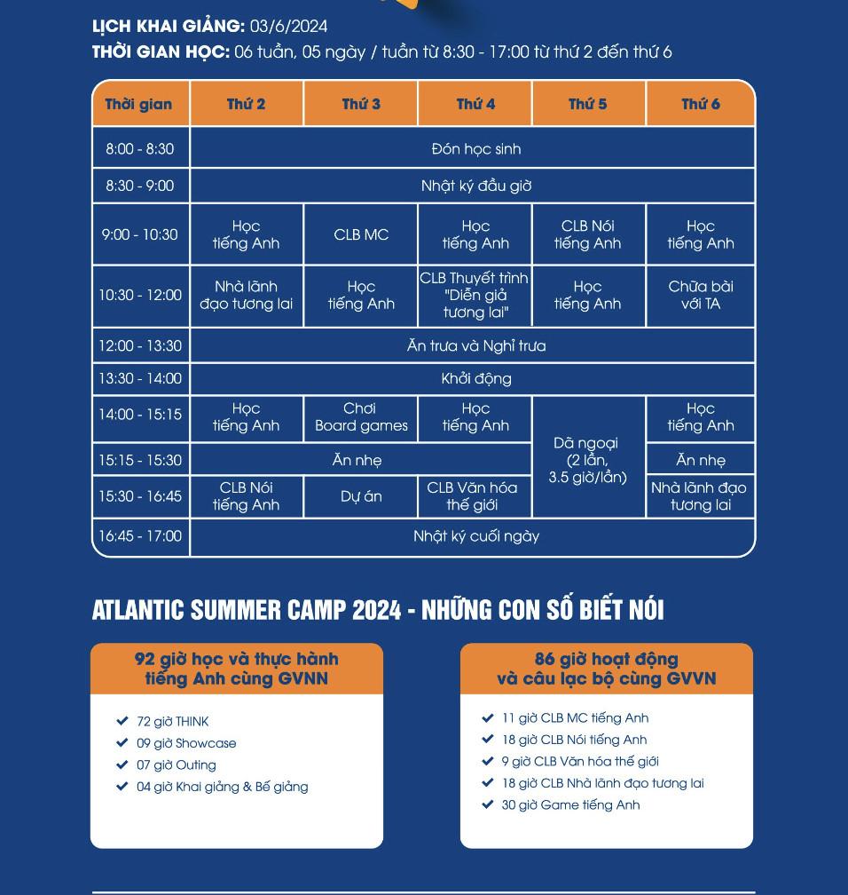 Ngoài ra, các trung tâm như NewSky còn có chương trình hè bán trú, vừa học tiếng Anh vừa tham gia hoạt động ngoại khóa, giúp các con vừa trau dồi kiến thức vừa phát triển kỹ năng sống. Mỗi trung tâm đều có những ưu đãi riêng, nên phụ huynh có thể tham khảo kỹ trước khi quyết định.
