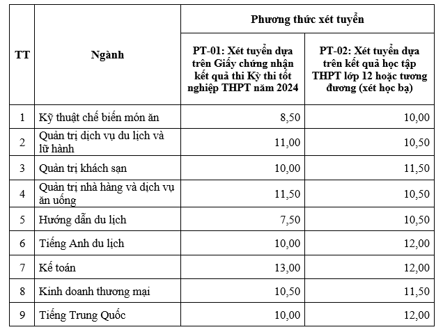 Trường Cao đẳng Du lịch Hà Nội là một trong những cơ sở giáo dục uy tín trong lĩnh vực du lịch tại Việt Nam. Năm 2025, trường tiếp tục tuyển sinh với hai phương thức chính: xét tuyển dựa vào kết quả thi tốt nghiệp THPT và xét tuyển dựa vào kết quả học tập THPT. Các tổ hợp xét tuyển đa dạng, bao gồm A00, A01, D01, C00, giúp thí sinh có nhiều lựa chọn phù hợp với năng lực của mình.