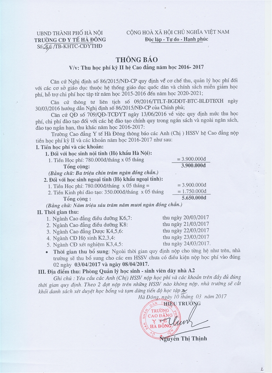 Khi theo học tại Cao đẳng Y Hà Nội, việc đóng học phí khá đơn giản và thuận tiện. Thông thường, nhà trường sẽ thông báo rõ mức học phí và thời gian nộp ngay khi thí sinh nhận giấy báo nhập học. Sinh viên cần chuẩn bị đầy đủ hồ sơ và đến đúng địa điểm trường quy định để làm thủ tục nhập học cũng như đóng học phí theo hướng dẫn.
