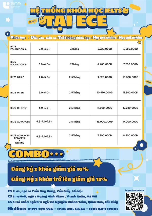 IELTS là kỳ thi tiếng Anh quốc tế quan trọng, yêu cầu người học phải có chiến lược học tập hiệu quả cũng như chọn lựa giáo viên phù hợp. Trong đó, cô Yến là một trong những giảng viên IELTS được nhiều học viên tin tưởng nhờ chuyên môn cao và phương pháp dạy linh hoạt. Tuy nhiên, học phí các lớp IELTS của cô Yến là bao nhiêu? Có những ưu đãi gì đặc biệt cho học viên? Bài viết này sẽ cung cấp bảng giá học phí, thông tin chi tiết về các khóa học, cũng như hướng dẫn đăng ký và cập nhật những chương trình ưu đãi mới nhất từ cô Yến IELTS.